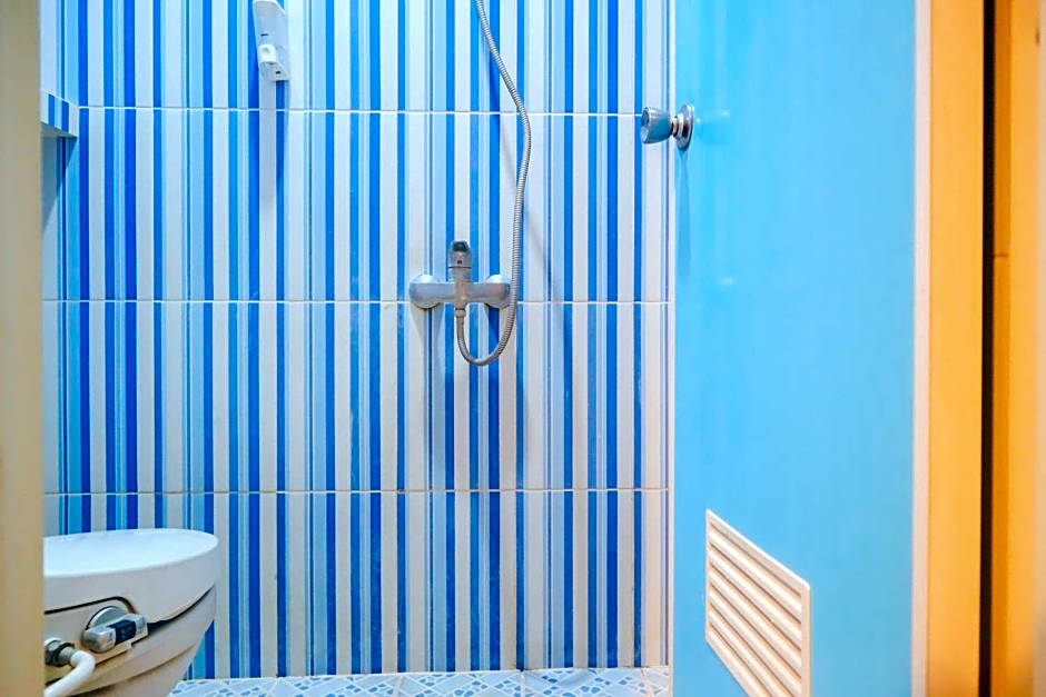 Private room with bedside tables, reading lights and access to shared bathroom facilities.